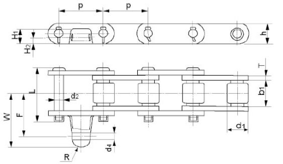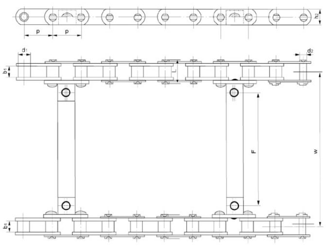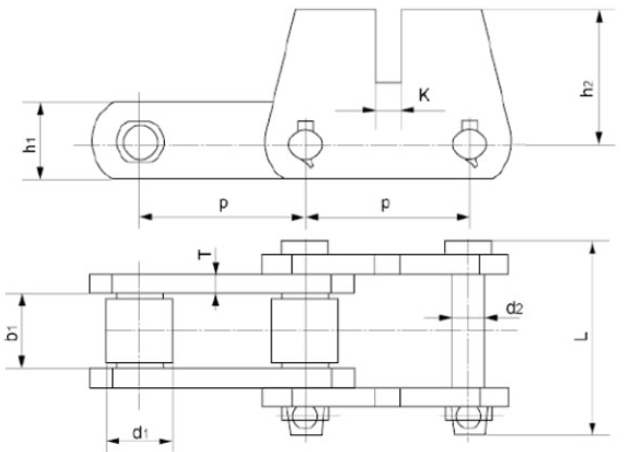 內節內寬 b1 (mm)滾子外徑 d1 (max) (mm)銷軸直徑d2 (mm)銷軸長度 L (mm)鏈板高度 h (mm)