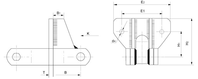| H1(mm) | H2(mm) | E1(mm) | E2(mm) | d4(mm) | B(mm) | B1(mm) | T(mm) | |