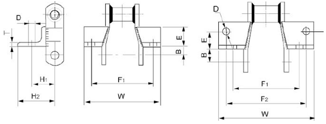 | B(mm) | D(mm) | E(mm) | F1(mm) | F2(mm) | H1(mm) | H2(mm) | W(mm) | T(mm) | |
