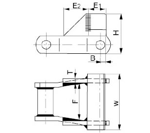 | B(mm) | E1(mm) | E2(mm) | F(min)(mm) | H(mm) | T(mm) | W(mm) | |