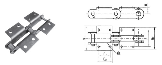 | Matching chain no. | H(mm) | E1(mm) | E2(mm) | d1(mm) | F(mm) | W1(mm) | W2(mm) |
