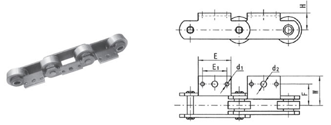 | Matching chain no. | H(mm) | E1(mm) | E(mm) | d1(mm) | d2(mm) | F(mm) | W(mm) |